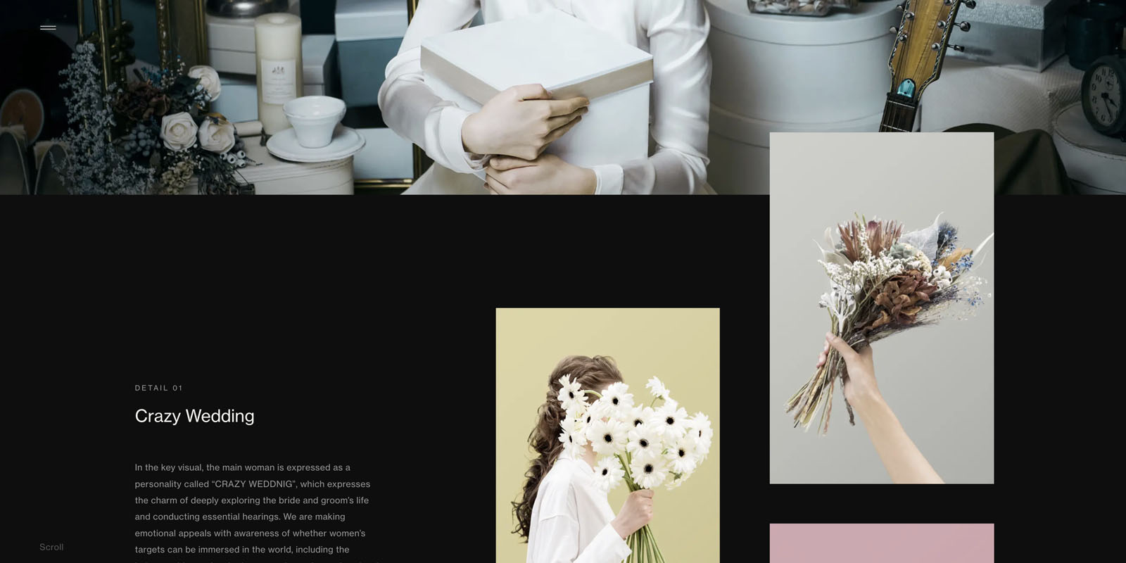 Az oldala viszont nem az a tipikus japános, bár a letisztultsága a sushi-k tökéletes egyszerűségére emélekeztet. Az egyszerű animációk (GSAP) és finom paralax elemek alapján nem egy kreatív stúdió weboldalára gondolnánk.